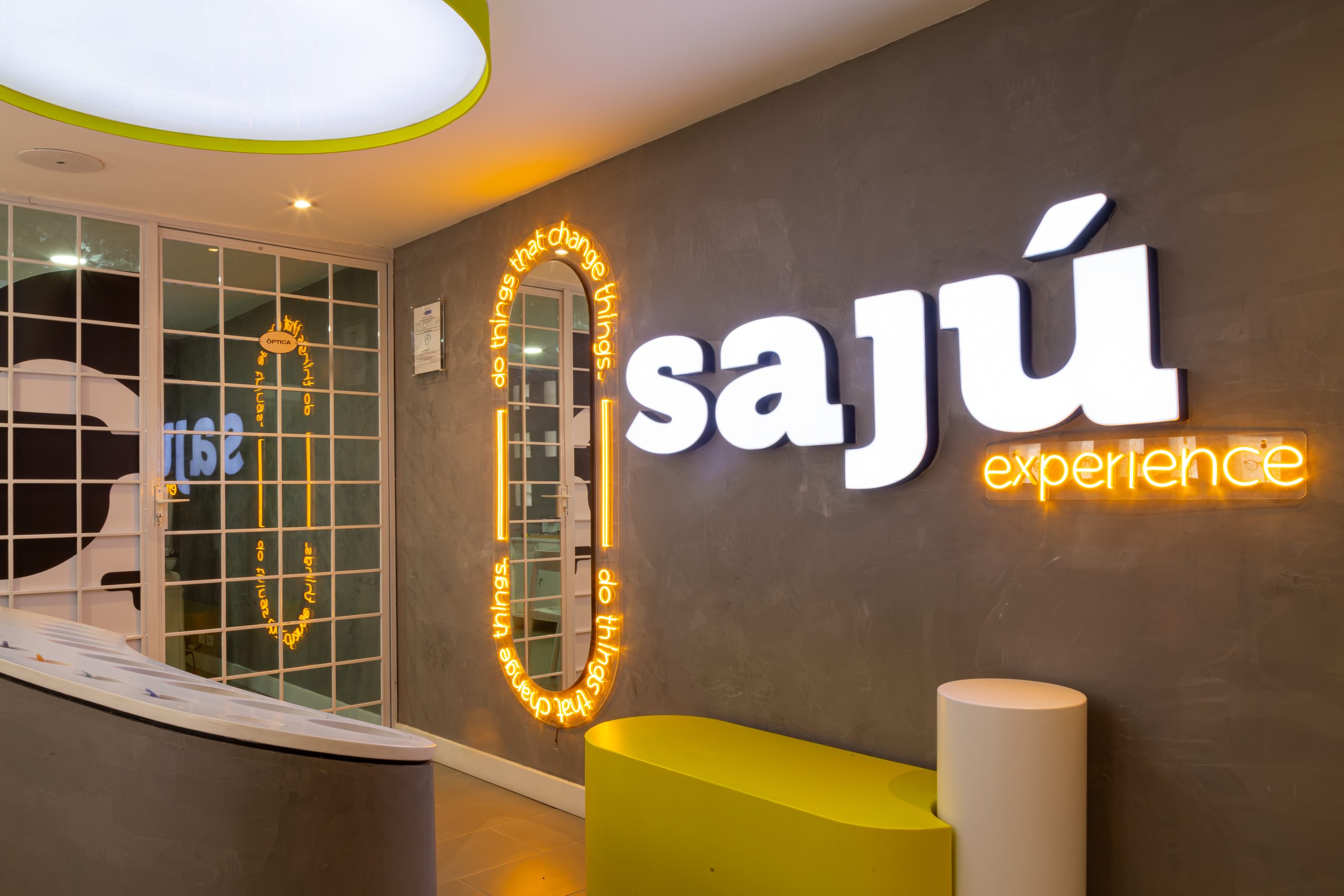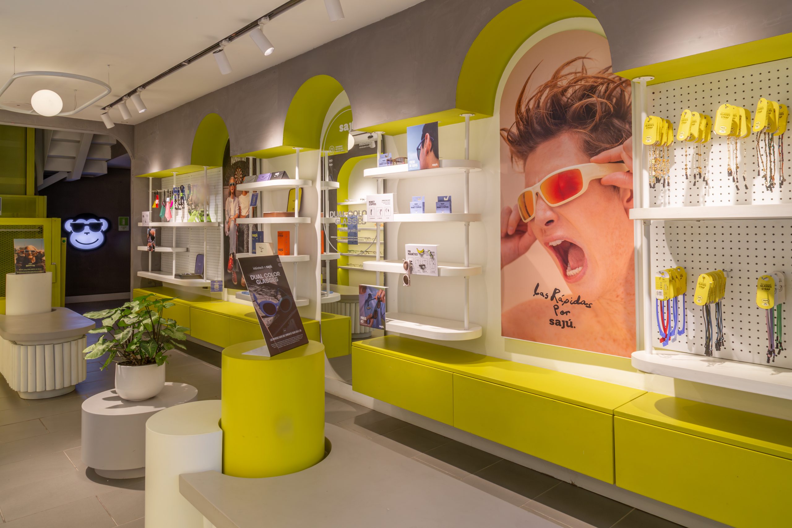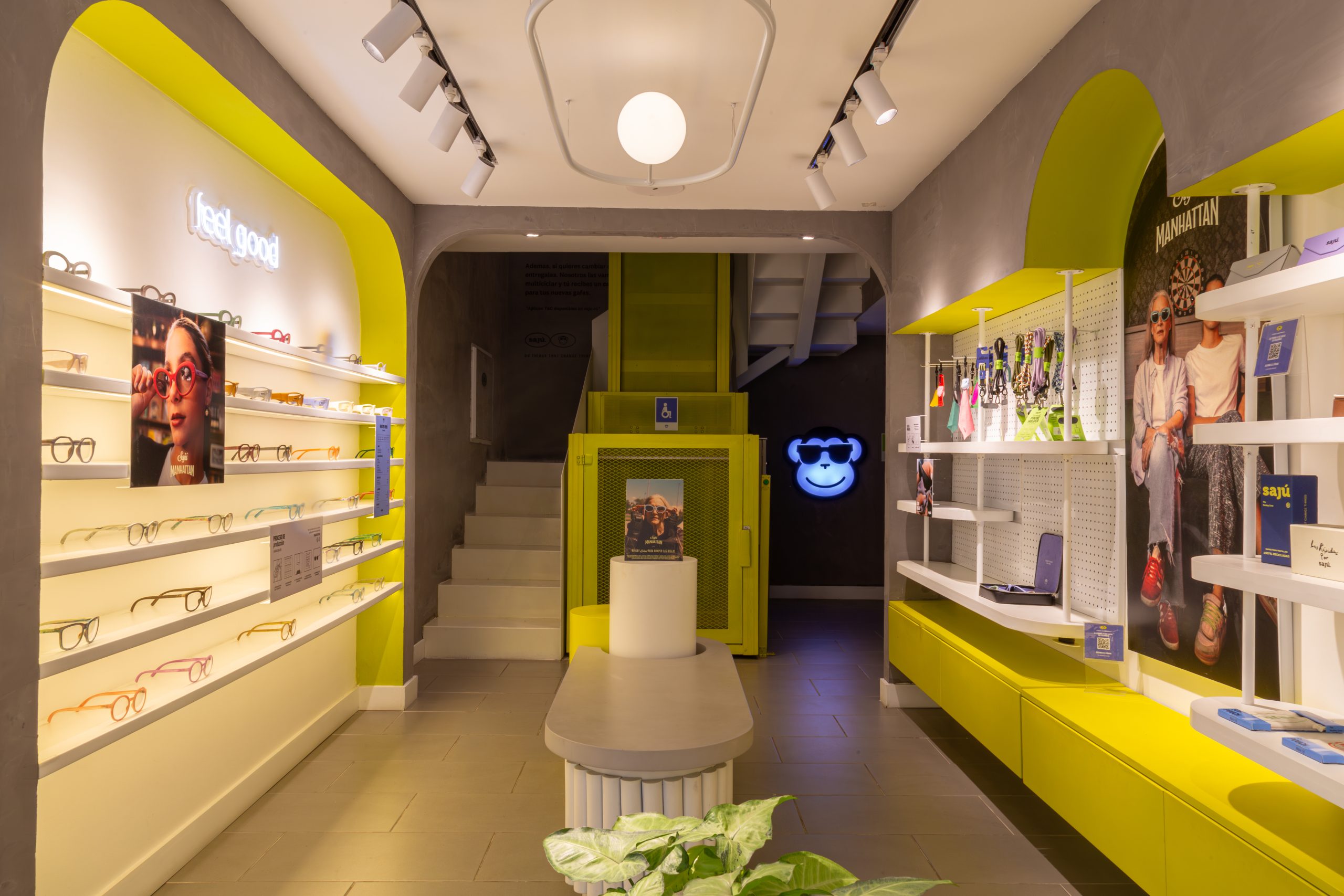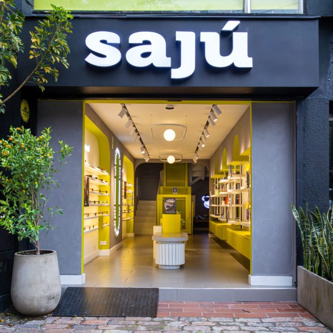 Sajú es una marca inspiradora que ha logrado consolidar una audiencia fiel a lo largo de los años. Aquí empezó todo, esta es su Flagship en Bogotá y es el formato “L” de sus puntos de venta, donde se exhiben exclusivamente los productos de su línea y se ofrece el servicio de Optometría y experiencia de personalización.