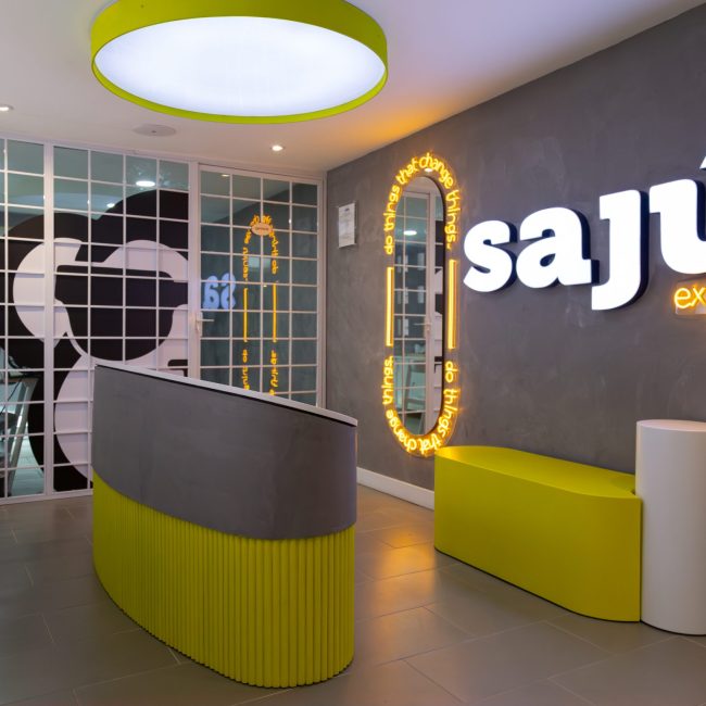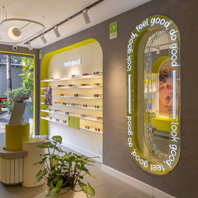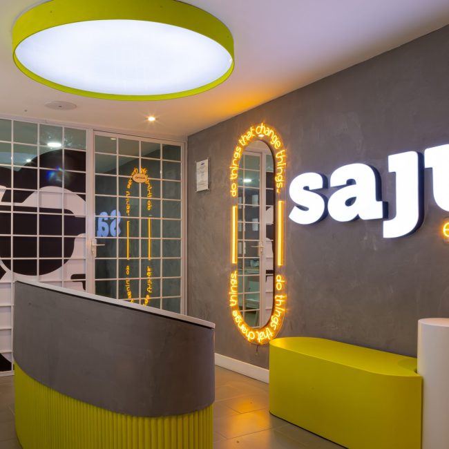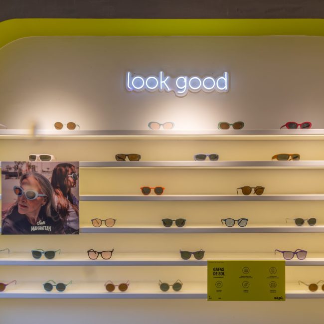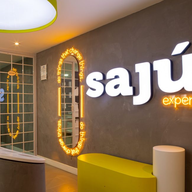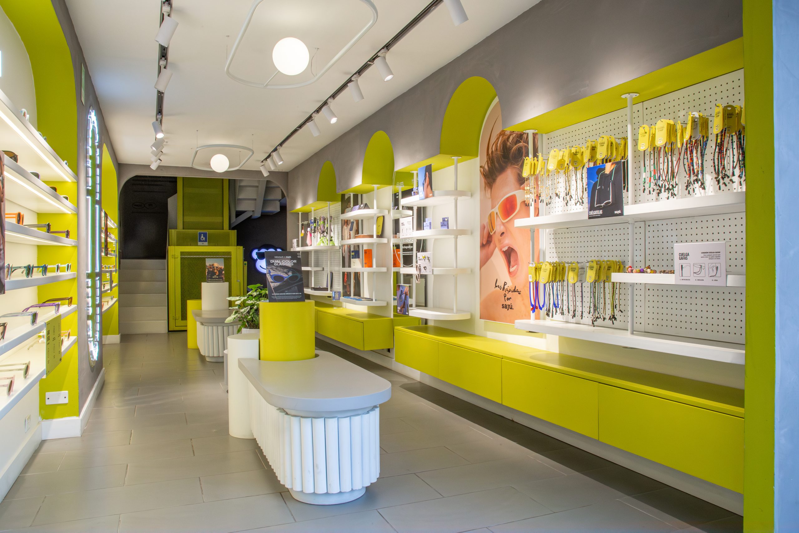 Sajú es una marca inspiradora que ha logrado consolidar una audiencia fiel a lo largo de los años. Aquí empezó todo, esta es su Flagship en Bogotá y es el formato “L” de sus puntos de venta, donde se exhiben exclusivamente los productos de su línea y se ofrece el servicio de Optometría y experiencia de personalización.