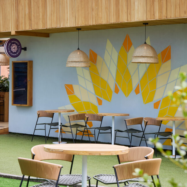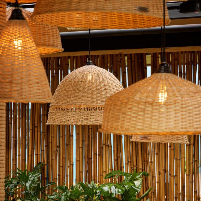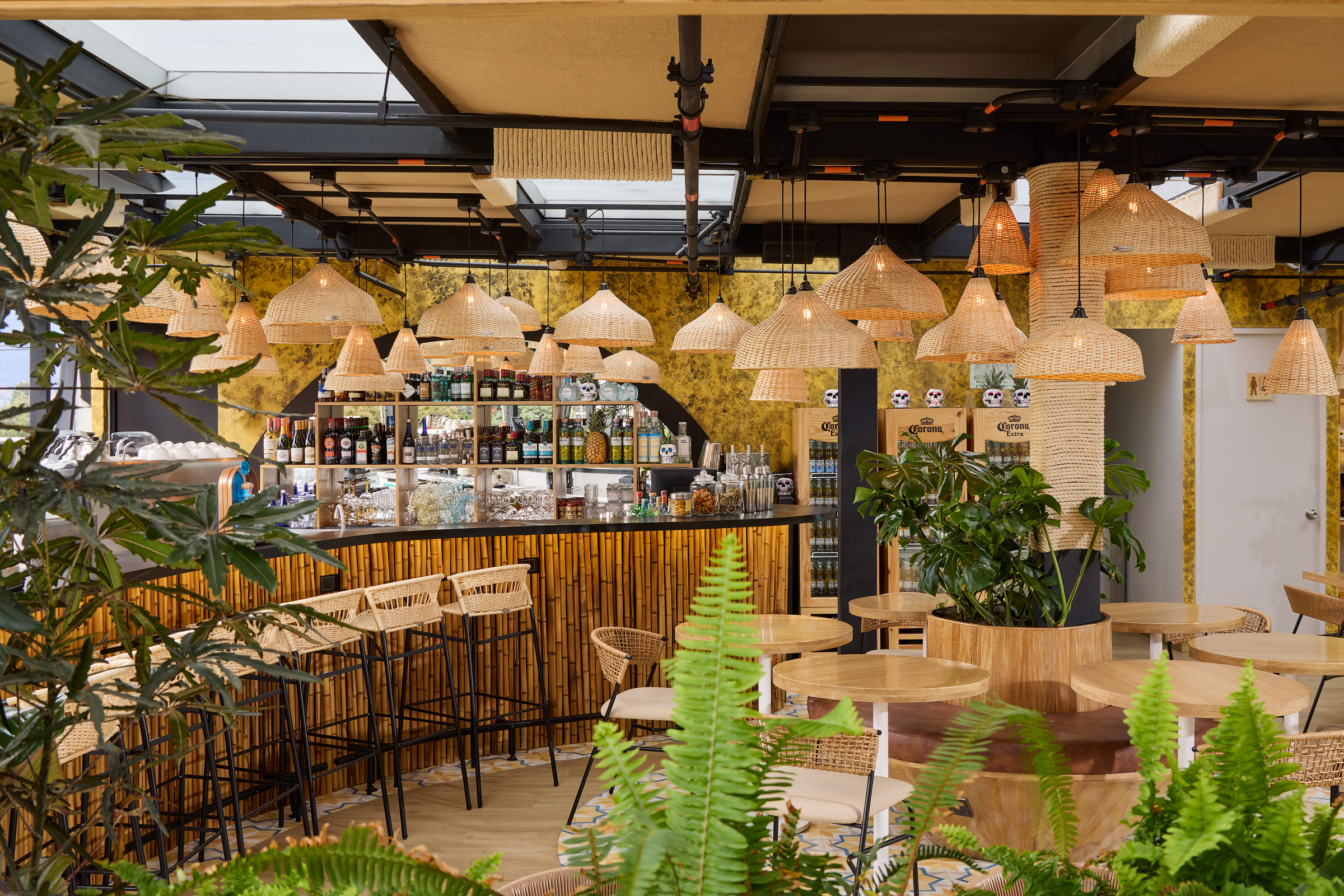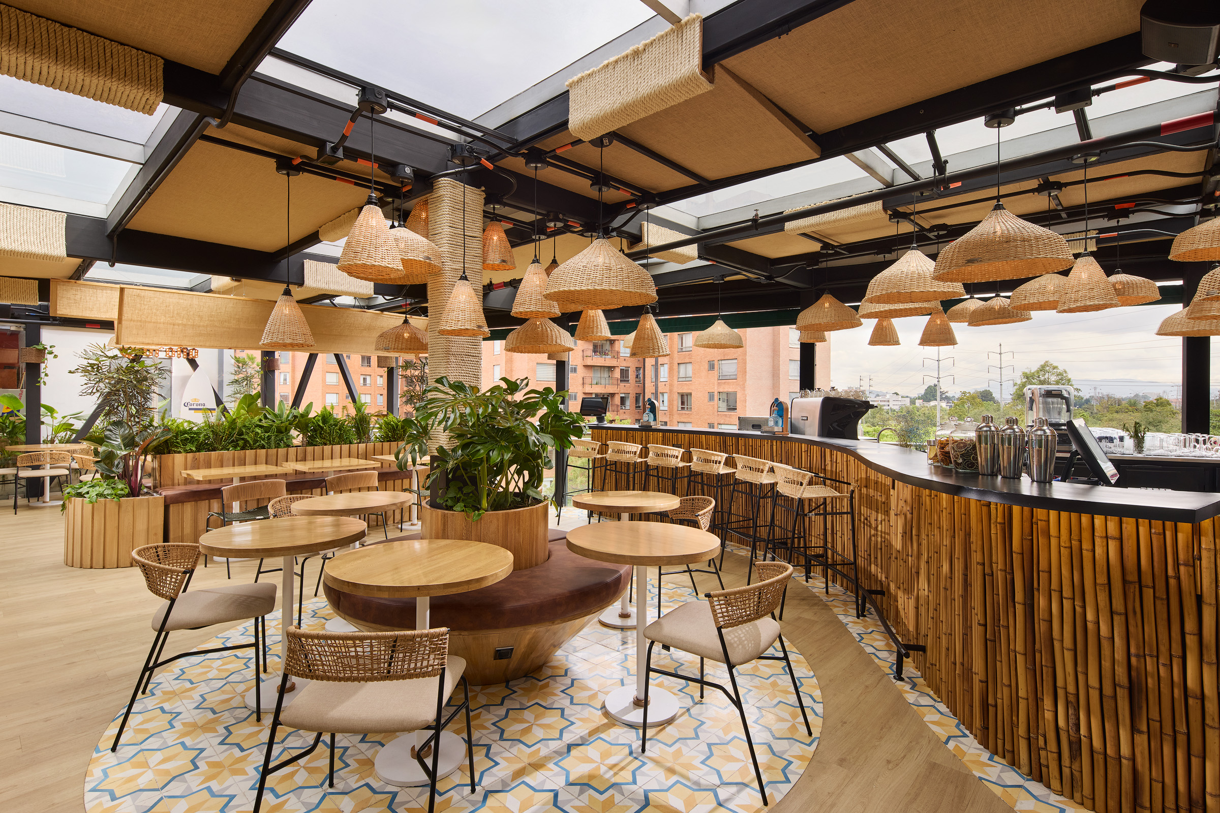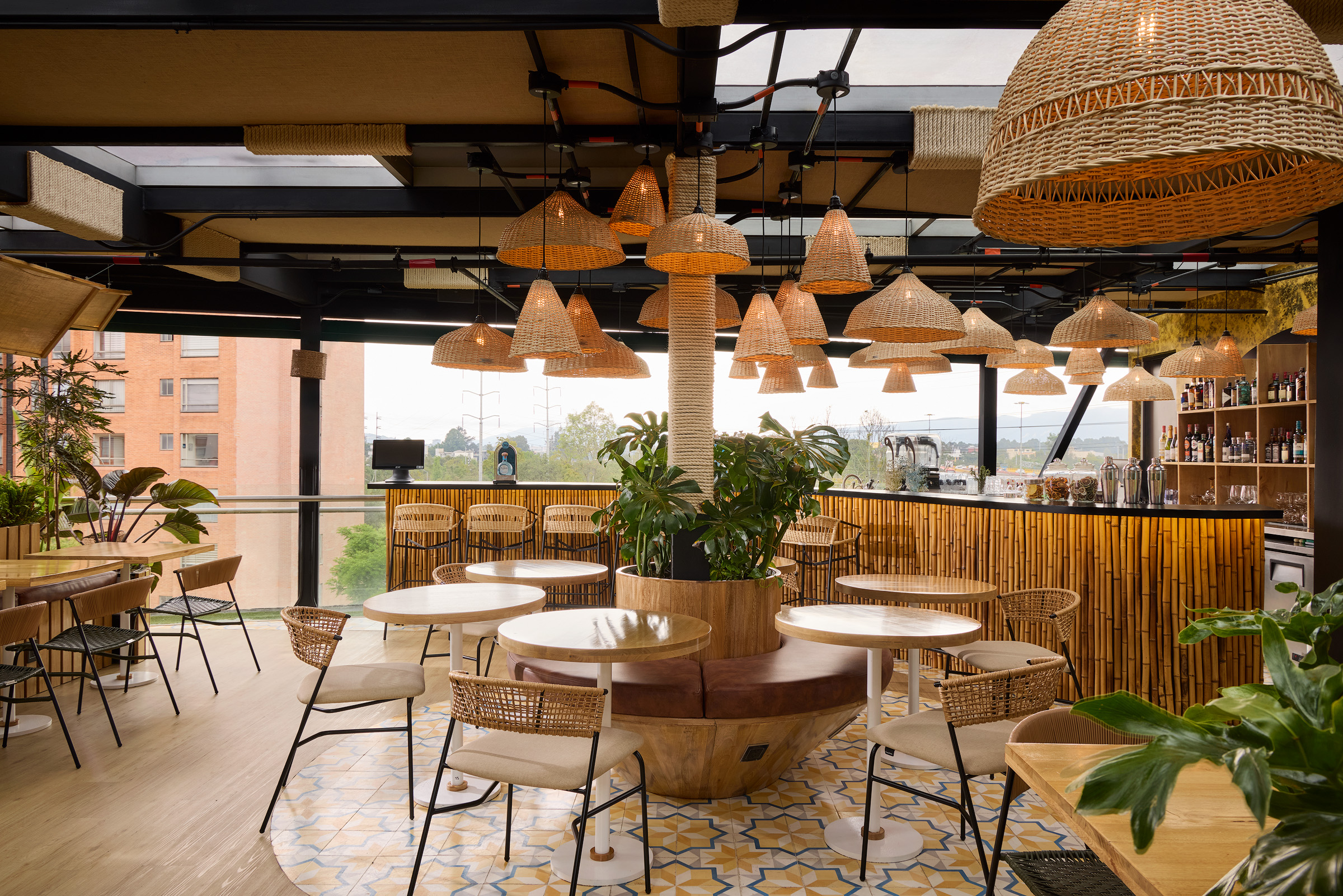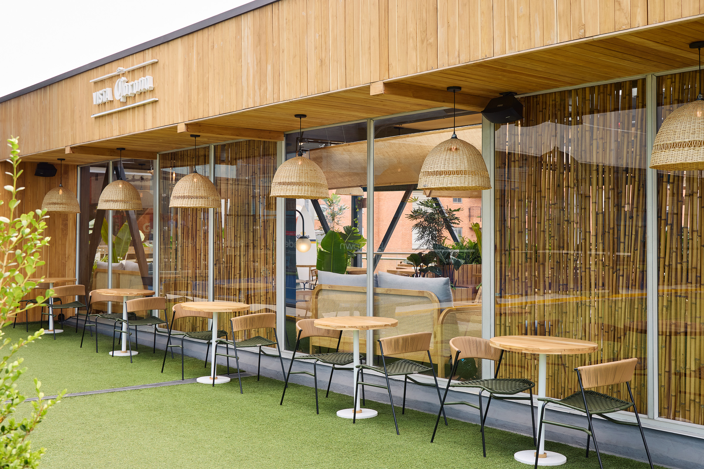 Diseñamos Vista Corona como una experiencia que transporta a la playa en medio de la ciudad. La esencia de la marca Corona, basada en la conexión con la naturaleza, el disfrute del momento y la aventura, se tradujo en un espacio relajado, fresco y acogedor. El diseño del restaurante/bar evoca un refugio tropical, donde los materiales naturales como la madera, el mimbre y la piedra se combinan con abundante vegetación para crear un ambiente cálido y orgánico. La iluminación tenue, con lámparas de fibras naturales suspendidas en diferentes alturas, aporta una sensación de intimidad y confort, mientras que los amplios ventanales permiten la entrada de luz natural y enmarcan la vista. Los espacios han sido diseñados para propiciar la desconexión y el disfrute, con áreas lounge, mesas comunales y rincones más íntimos. El mobiliario, con texturas suaves y tonos neutros, refuerza la sensación de frescura y armonía con el entorno. Los detalles gráficos y decorativos, inspirados en el sol, la arena y el mar, complementan la narrativa visual y refuerzan la identidad de la marca. Desde la disposición del espacio hasta la selección de materiales, cada elemento ha sido pensado para transmitir la esencia de Vista Corona: un lugar donde cada visita se convierte en una escapada, donde el tiempo se detiene y el único propósito es disfrutar del aquí y el ahora.