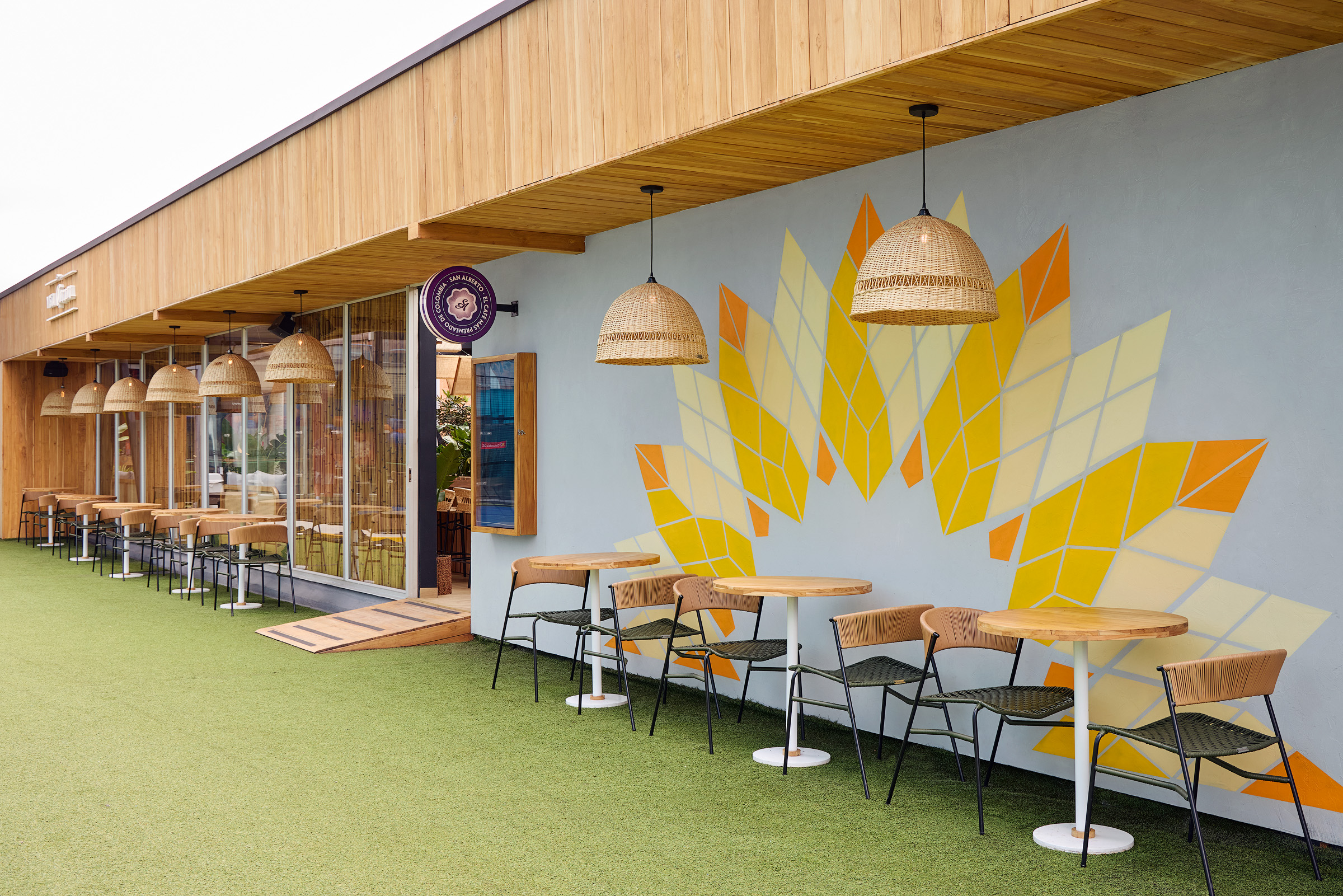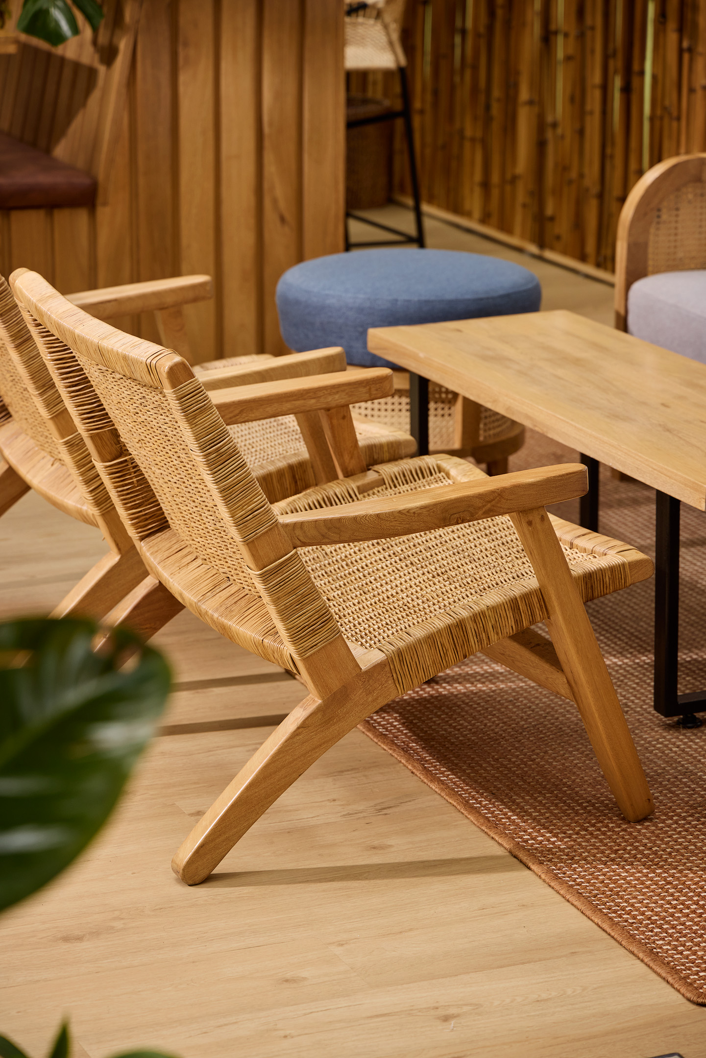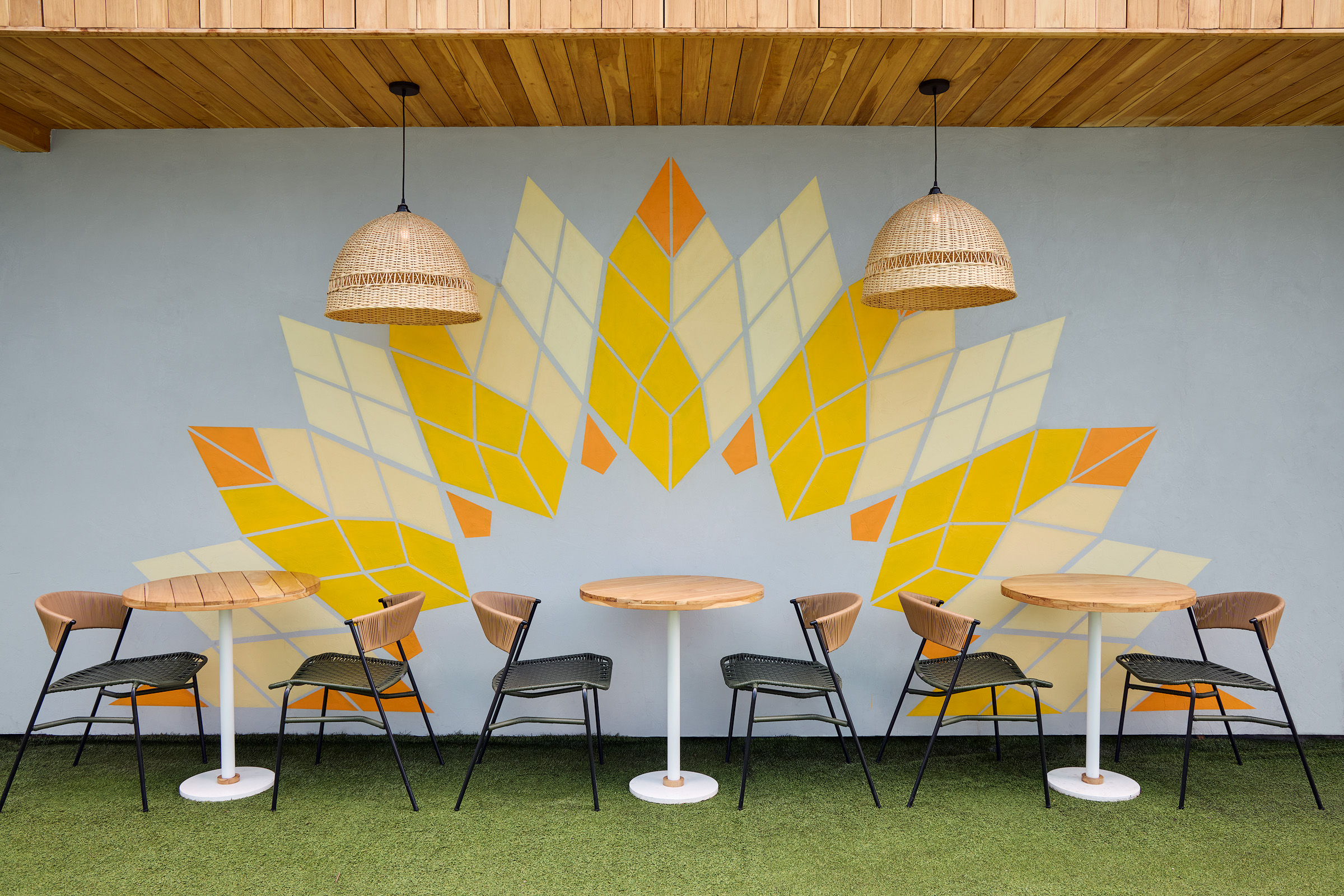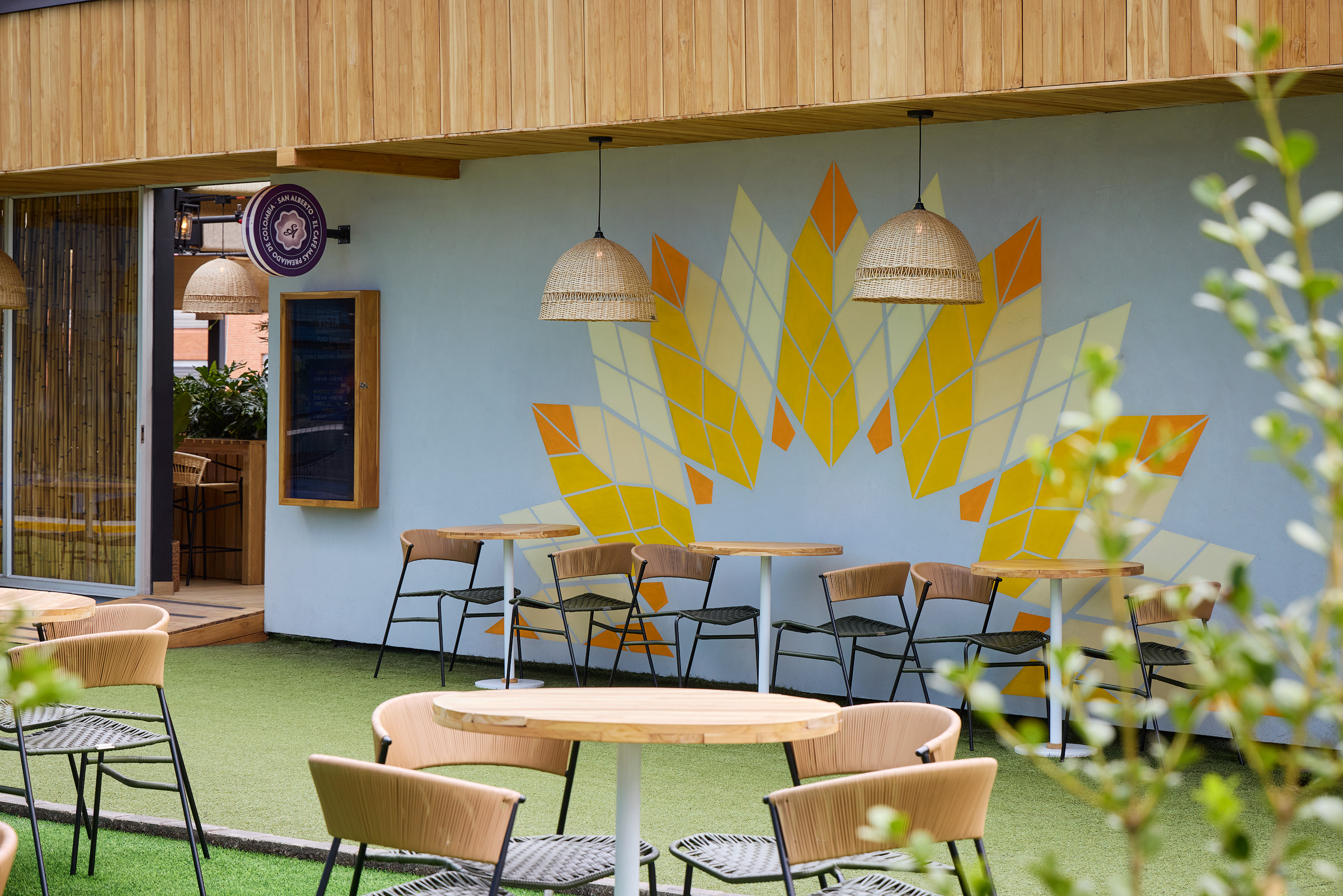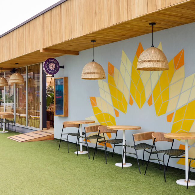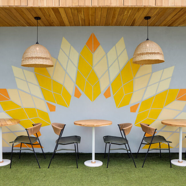 Diseñamos Vista Corona como una experiencia que transporta a la playa en medio de la ciudad. La esencia de la marca Corona, basada en la conexión con la naturaleza, el disfrute del momento y la aventura, se tradujo en un espacio relajado, fresco y acogedor. El diseño del restaurante/bar evoca un refugio tropical, donde los materiales naturales como la madera, el mimbre y la piedra se combinan con abundante vegetación para crear un ambiente cálido y orgánico. La iluminación tenue, con lámparas de fibras naturales suspendidas en diferentes alturas, aporta una sensación de intimidad y confort, mientras que los amplios ventanales permiten la entrada de luz natural y enmarcan la vista. Los espacios han sido diseñados para propiciar la desconexión y el disfrute, con áreas lounge, mesas comunales y rincones más íntimos. El mobiliario, con texturas suaves y tonos neutros, refuerza la sensación de frescura y armonía con el entorno. Los detalles gráficos y decorativos, inspirados en el sol, la arena y el mar, complementan la narrativa visual y refuerzan la identidad de la marca. Desde la disposición del espacio hasta la selección de materiales, cada elemento ha sido pensado para transmitir la esencia de Vista Corona: un lugar donde cada visita se convierte en una escapada, donde el tiempo se detiene y el único propósito es disfrutar del aquí y el ahora.