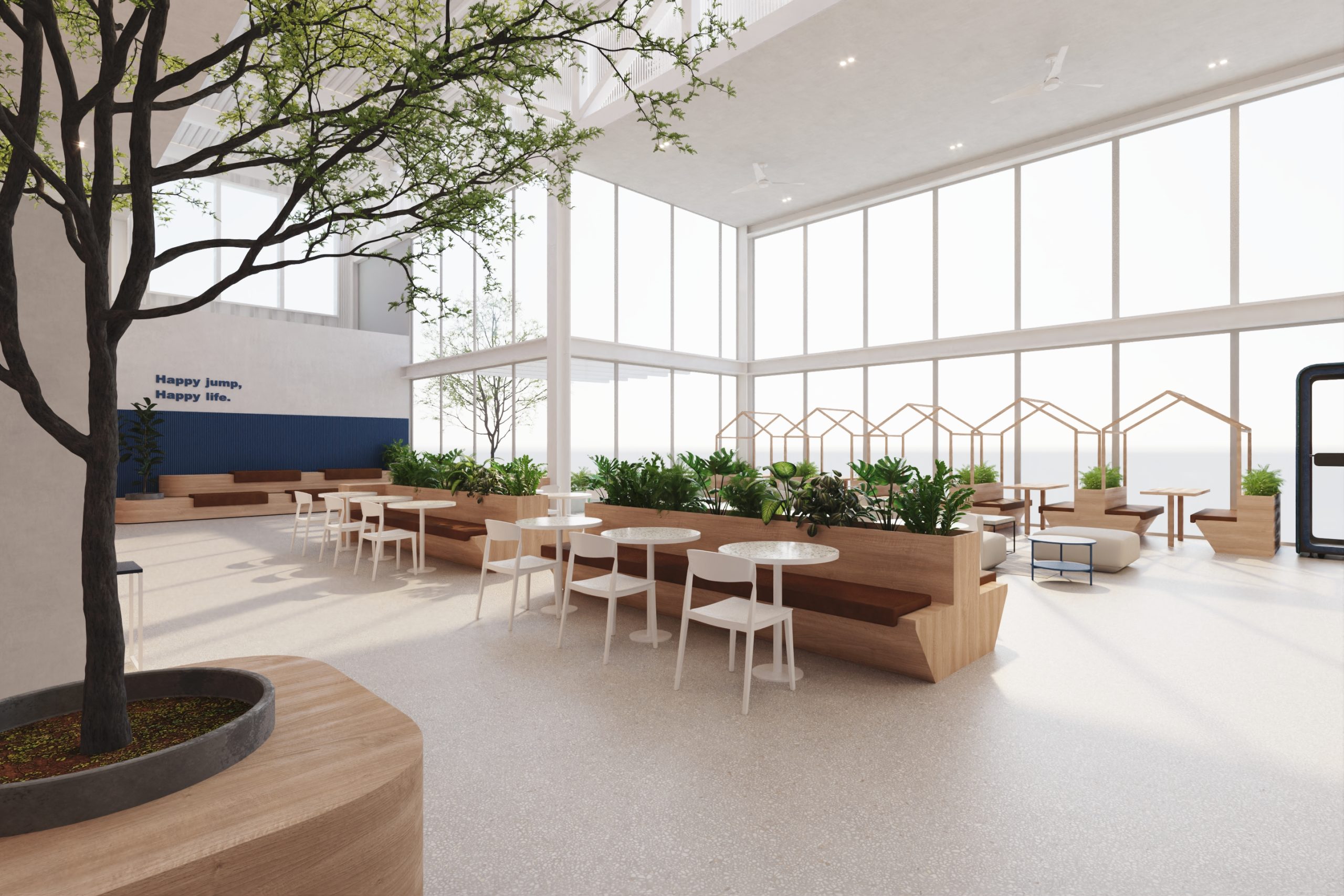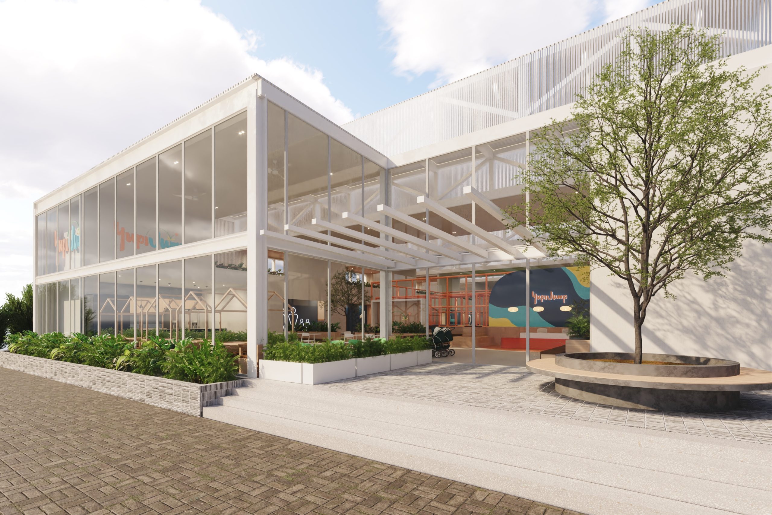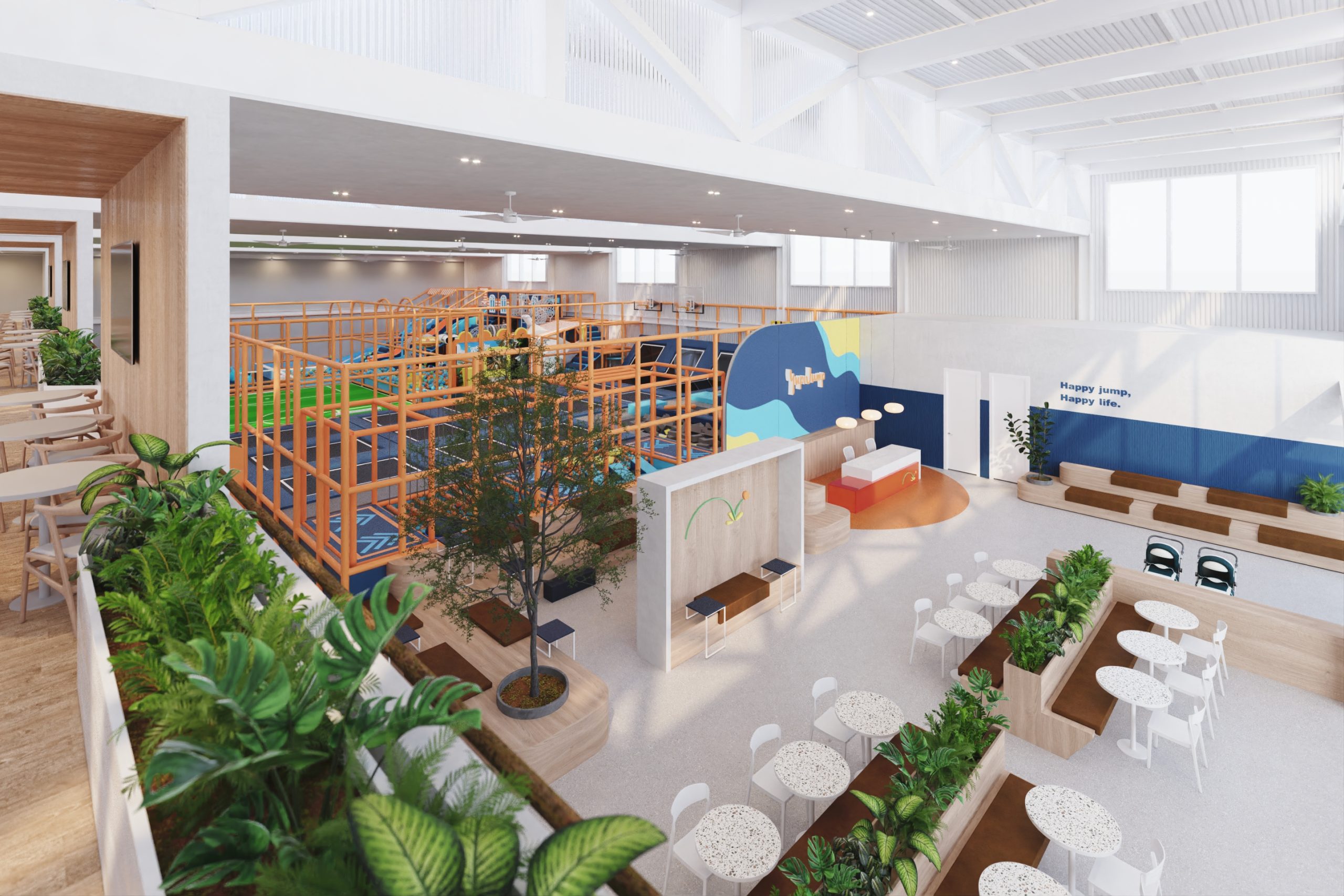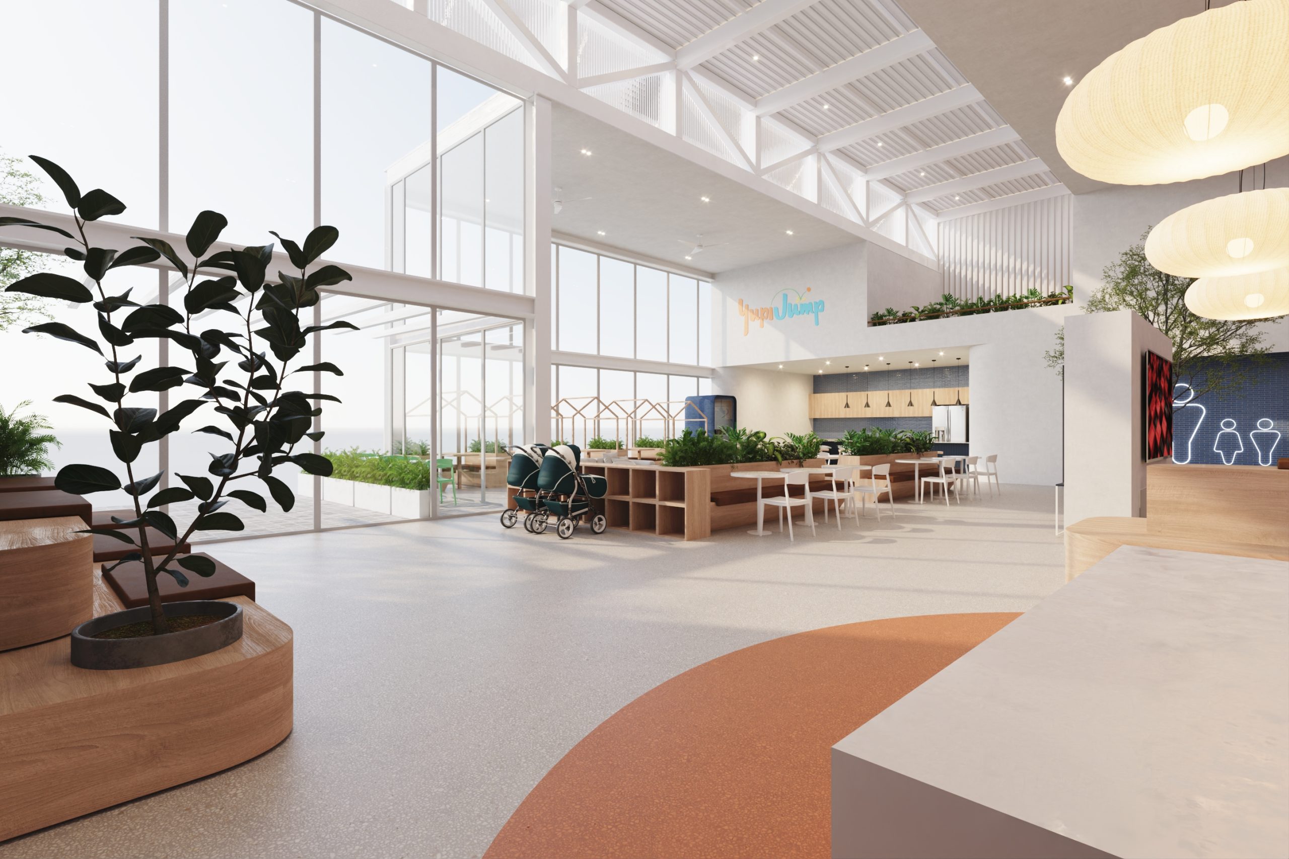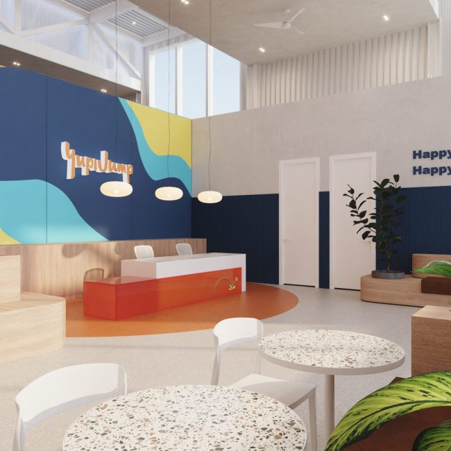 La arquitectura del proyecto no solo se centra en los más pequeños. También incluye áreas cómodas y acogedoras para los padres: espacios de coworking, zonas de descanso y salones de fiesta que hacen de este lugar un centro de experiencias para toda la familia. La atmósfera combina diseño lúdico y contemporáneo, con colores vibrantes, mobiliario cálido y abundante vegetación que aportan frescura y vitalidad.
