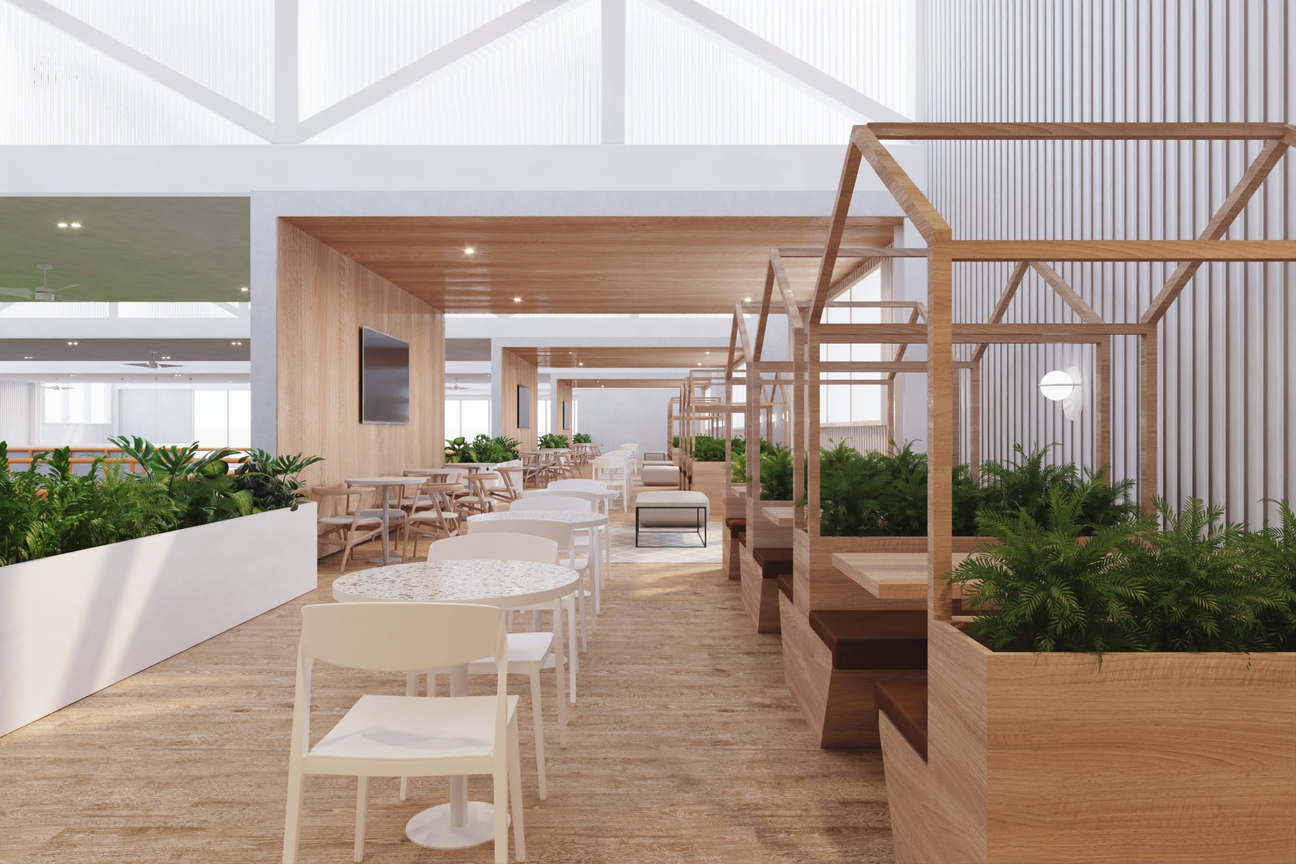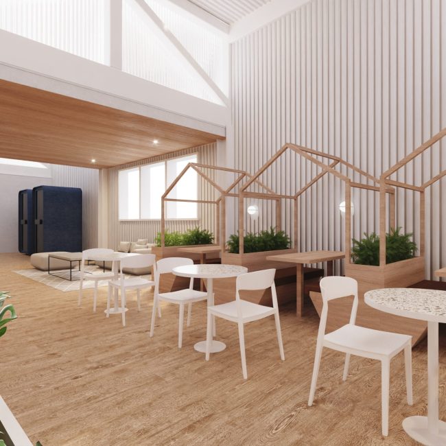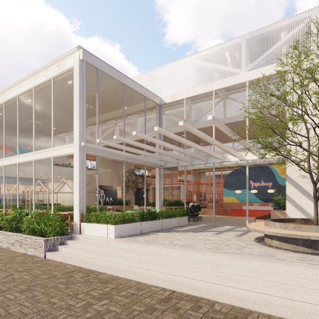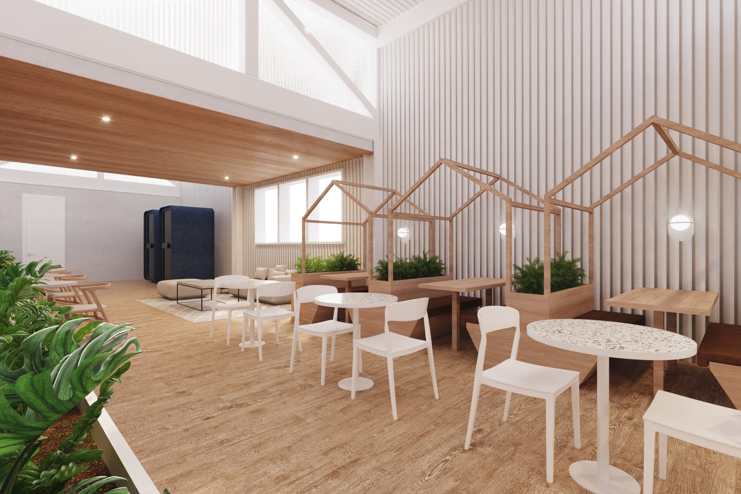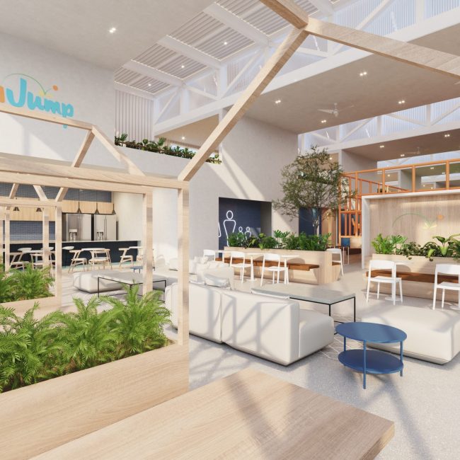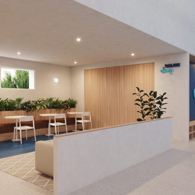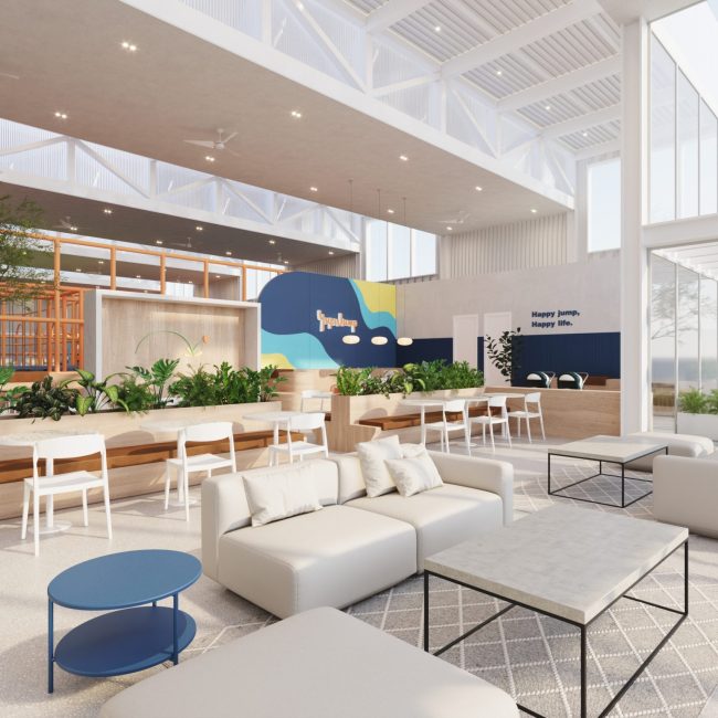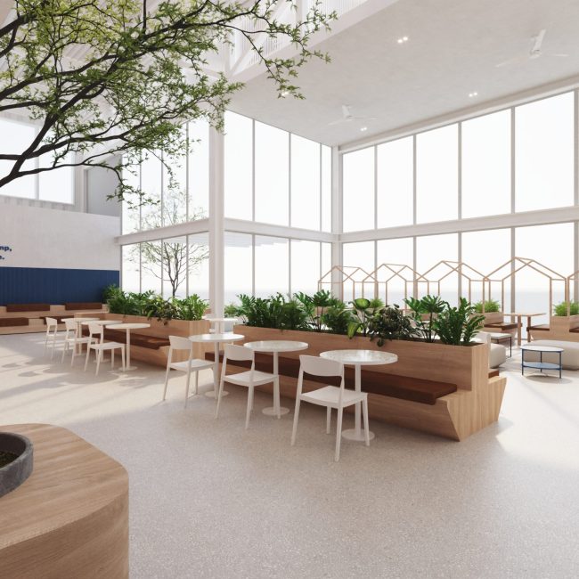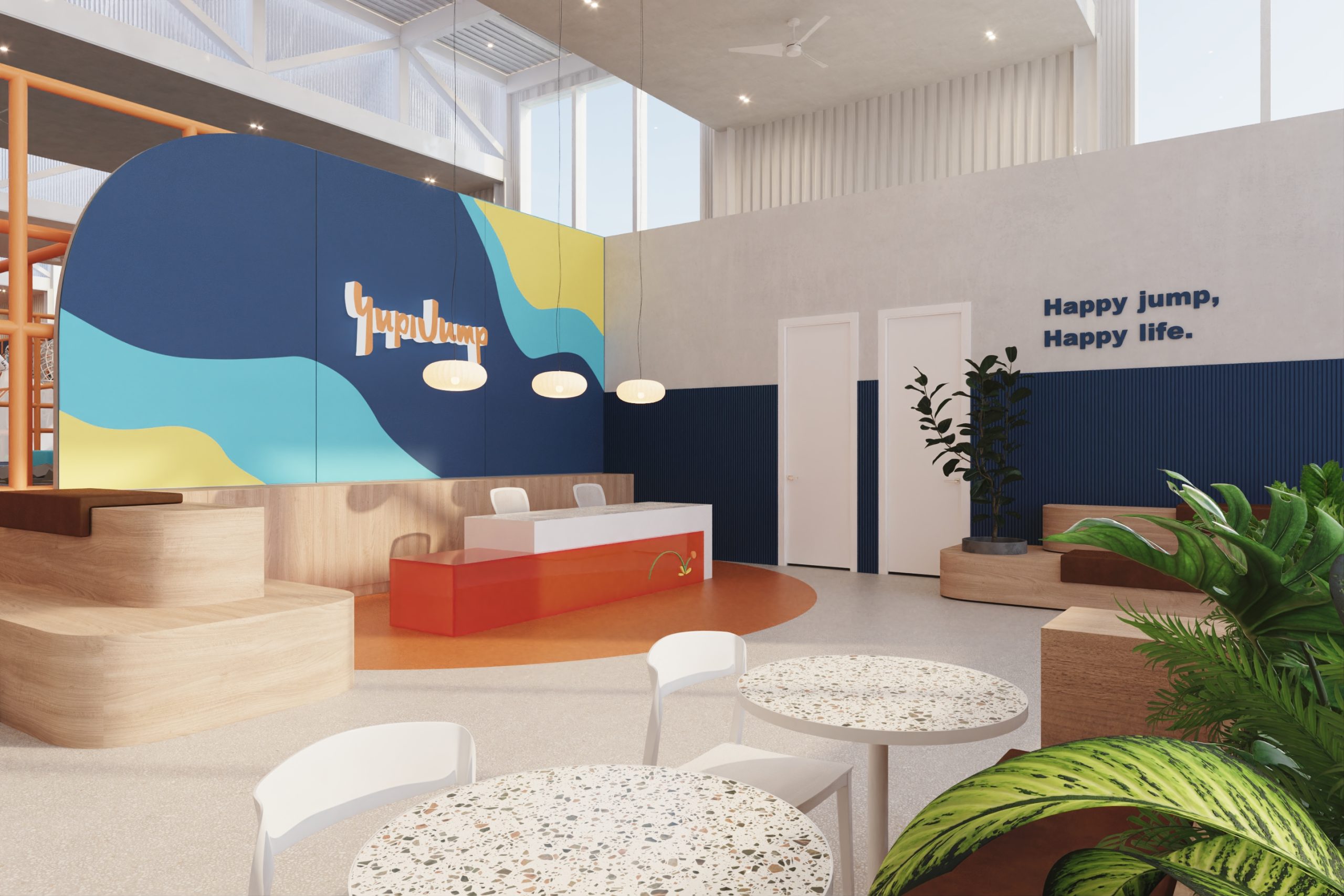 La arquitectura del proyecto no solo se centra en los más pequeños. También incluye áreas cómodas y acogedoras para los padres: espacios de coworking, zonas de descanso y salones de fiesta que hacen de este lugar un centro de experiencias para toda la familia. La atmósfera combina diseño lúdico y contemporáneo, con colores vibrantes, mobiliario cálido y abundante vegetación que aportan frescura y vitalidad.