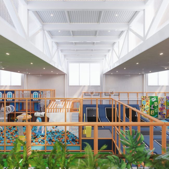 Este proyecto nace con la idea de crear un parque interior para niños, pensado como un lugar de encuentro familiar donde el juego, la comodidad y la funcionalidad se integran en un mismo espacio. El edificio fue diseñado desde cero, lo que nos permitió imaginar una estructura abierta y flexible, con grandes luces que eliminan las columnas en el interior y brindan total libertad para disfrutar de las zonas de juego.